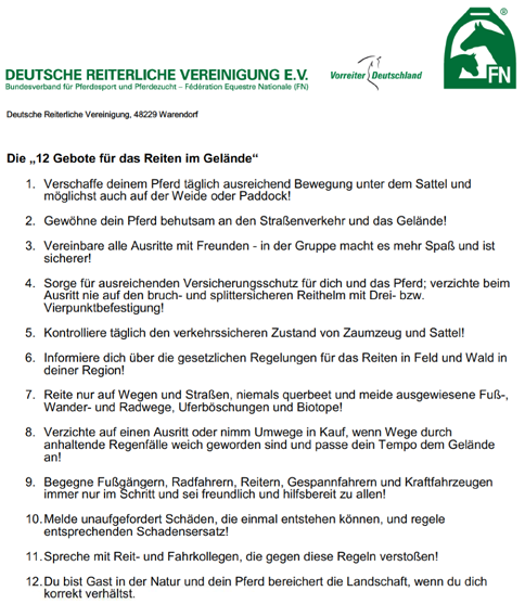 Leitsätze zum Reiten im Gelände findet Ihr in Ausschnitten hier: